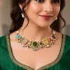 This choker sits gracefully around the neckline, making it an ideal accessory for sarees, lehengas, kurtis, and fusion outfits. The adjustable thread closure ensures a comfortable fit while adding a subtle handcrafted appeal. Whether you’re dressing up for a wedding, festive celebration, or a casual ethnic day out, this necklace adds a bold yet refined statement to your ensemble.