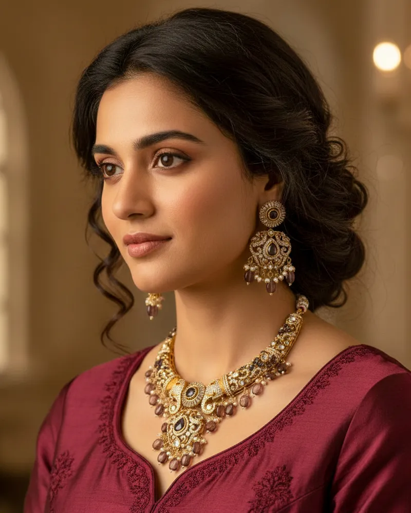 Add a touch of regal elegance to your jewelry collection with our Antique Hasli Choker Necklace, featuring vibrant multi-color stones and intricate craftsmanship. Inspired by traditional Indian heritage, this choker is a bold statement piece that beautifully complements ethnic and fusion outfits.