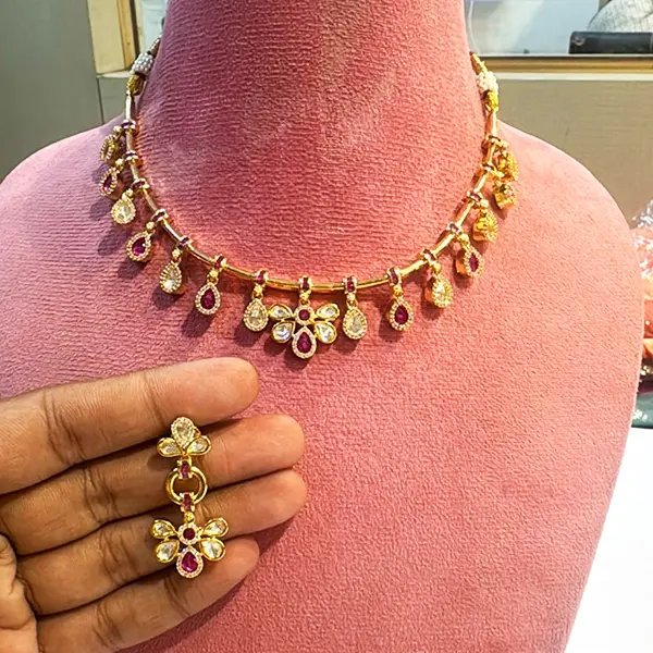 Moissanite Polki Necklace Set with Earrings