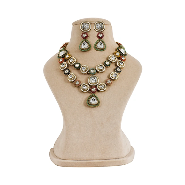 A colourful stunning Indo-Western necklace, a harmonious fusion of traditional elegance and contemporary charm. Crafted with precision and adorned with exquisite details, this necklace is the perfect accessory to make a statement on any occasion.