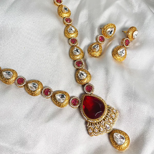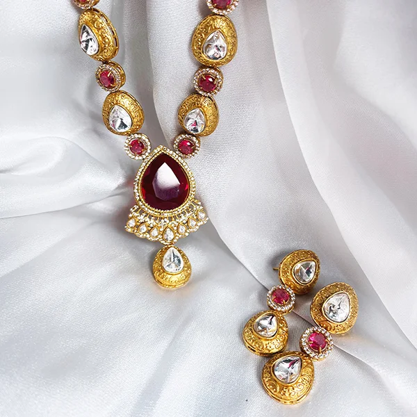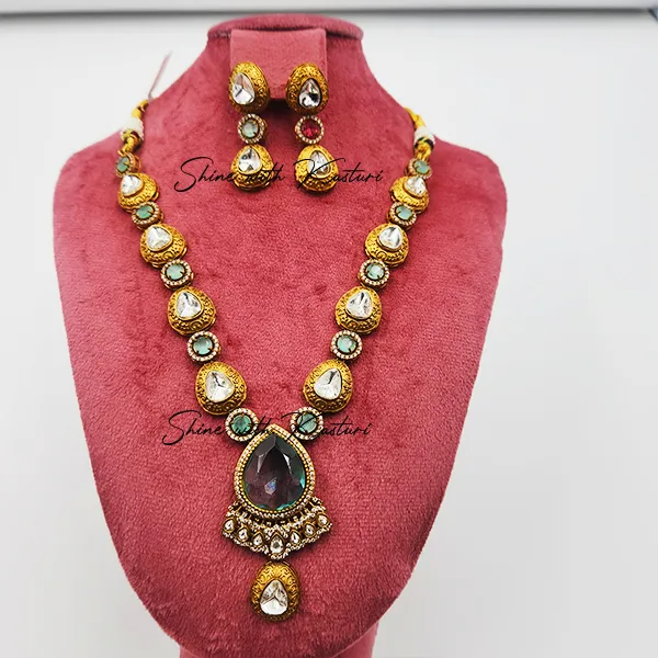 The Mira Royal Long Necklace Set showcases a perfect blend of tradition and elegance. Crafted with precision, this stunning jewelry piece enhances your festive and party look, making it ideal for weddings, celebrations, and special occasions.