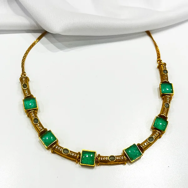 Enhance your jewelry collection with our Royal Multicolor Gemstone Necklace Set, beautifully crafted with square-cut stones in vibrant shades of green, pink, blue, and turquoise. Designed with a gold-plated finish and shimmering white accents, this necklace set comes with matching earrings to complete your look.