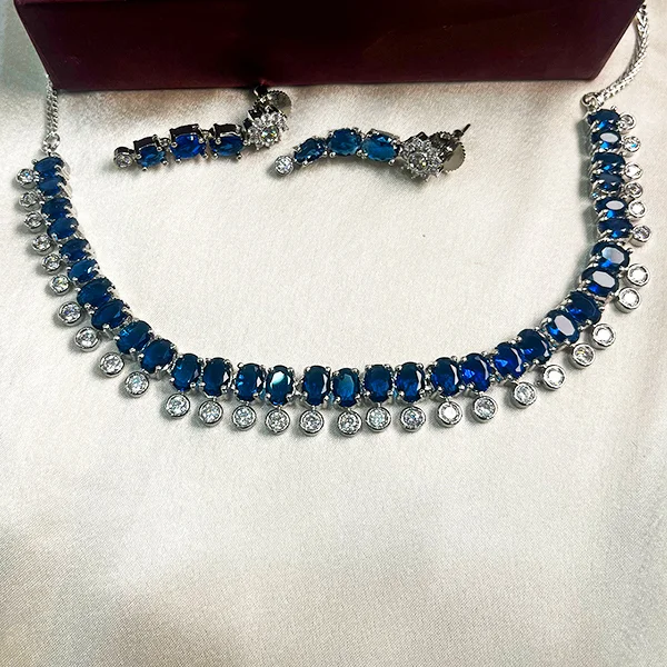 The Orion Necklace Set is bold and captivating, designed to make a statement. The necklace features large crosslink chains, each beautifully accentuated with sparkling AD stones and a circular detail. A striking teardrop pendant adds a pop of color, exuding elegance and sophistication. Paired with matching earrings, this set offers a luxurious, modern touch that’s perfect for making any occasion unforgettable. Available in colours purple and blue.