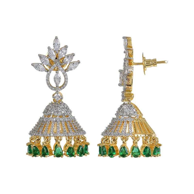 Statement Jhumki in Chandbaali Style With Little Stones Hanging, and Elegant Crown to Give it That Royal Look.