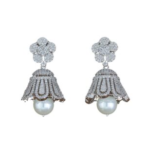 CZ Earring With Pearl(E-UK1504) is a stunning piece of jewelry that exudes elegance and sophistication. Crafted with precision, these CZ earrings with a pearl accent are perfect for any formal occasion. Their exquisite design and high-quality materials make them a timeless addition to any jewelry collection. CZ Silver Jhumki/ Earring With White Pearl in Drop