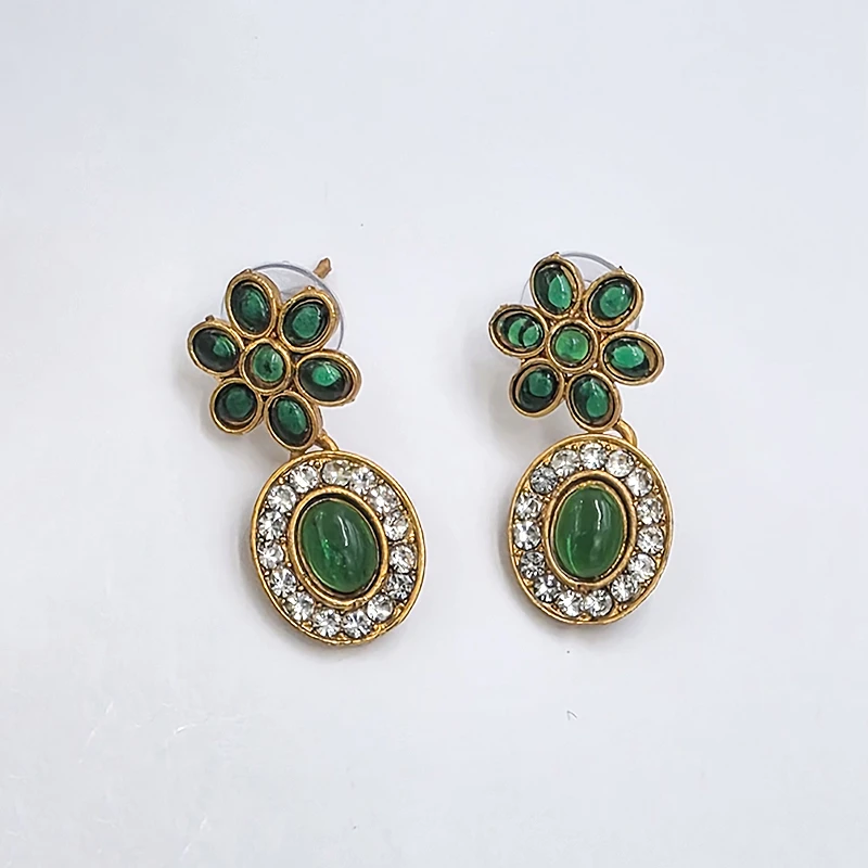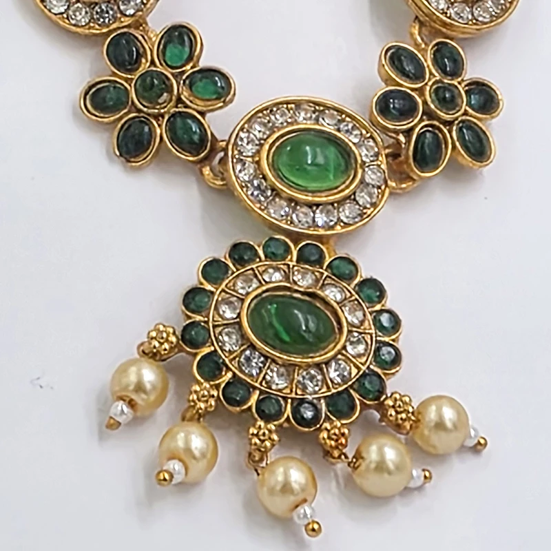 Emerald Floral Kundan Necklace Set with Pearl Drops