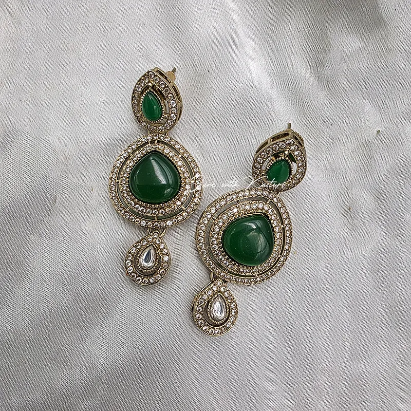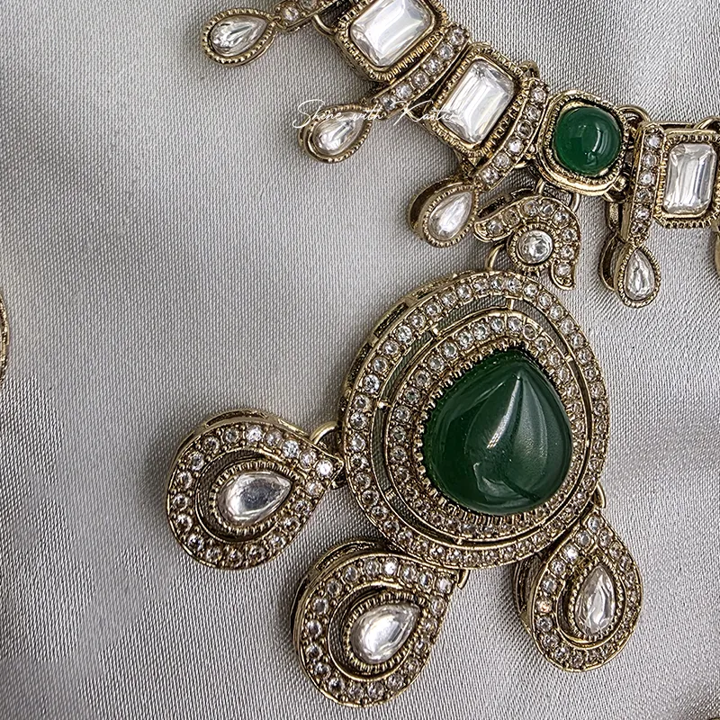 Emerald Teardrop Kundan Necklace Set