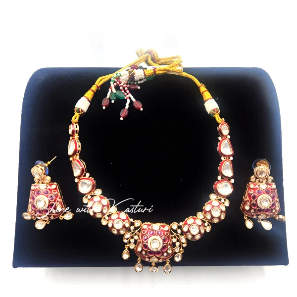Exquisite Handmade Necklace Set, designed to bring elegance and sophistication to every occasion. Crafted with precision and traditional artistry, this set showcases intricate detailing and timeless beauty. The handmade finish adds uniqueness to each piece, making it a standout accessory for weddings, festivals, and cultural events.