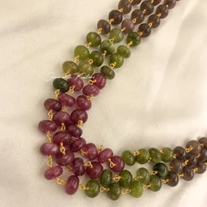 Multi-Colored Gemstone Beaded Layered Necklace, carefully selected natural beads in rich hues of green, pink, and earthy tones, this piece exudes charm and sophistication.