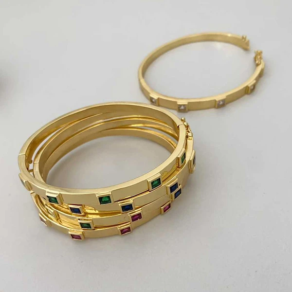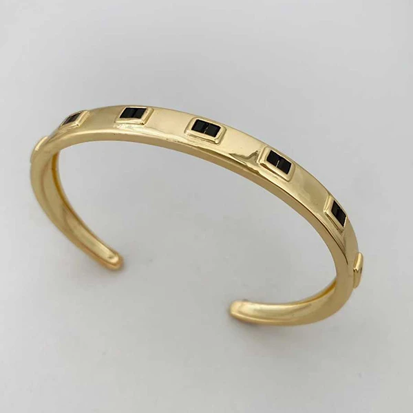 Gold-plated cuff Bangle with black square stone inlay is the perfect blend of modern elegance and timeless charm. Designed with a minimal yet striking look, the Bangle features a smooth gold finish adorned with neatly set black square stones, making it versatile for both casual and formal wear. The open-ended cuff style ensures comfort and easy adjustment, while the bold design adds a refined statement to any outfit.