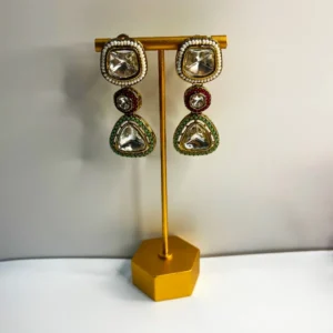 A colourful stunning Indo-Western necklace, a harmonious fusion of traditional elegance and contemporary charm. Crafted with precision and adorned with exquisite details, this necklace is the perfect accessory to make a statement on any occasion.