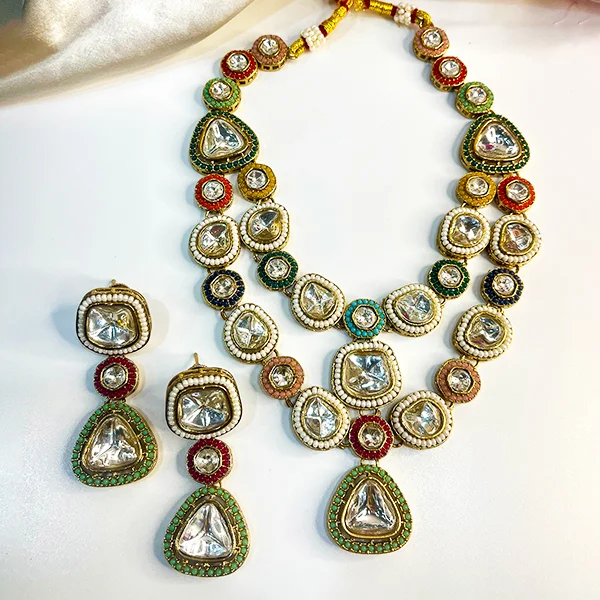 Layered Stone and Kundan Necklace with Multicolour Beads