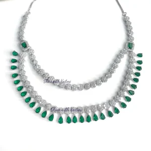 A graceful layered necklace featuring shimmering cubic zirconia and green stones, finished with a sleek silver plating. Perfect for those who love subtle sparkle with a pop of colour. Designed to complement both everyday looks and special moments.