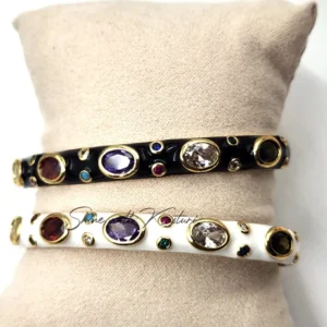 A stunning white bauble gem bracelet designed for modern fashion. Its sleek finish and subtle sparkle make it perfect for everyday wear or special occasions. An elegant choice that pairs beautifully with any outfit, available now at Kasturi & Co.