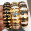 Buy Black and White Enamel Bangle Set. These striking Bangle feature a luxurious enamel finish in black and white tones, highlighted with delicate gold-plated accents.