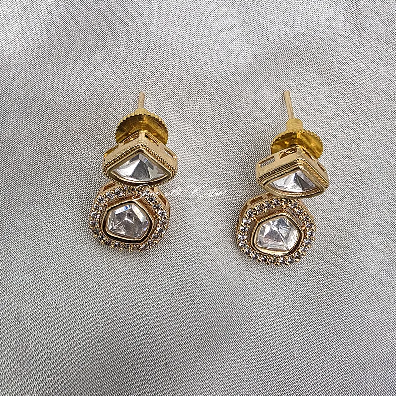 The delicate design is complemented by matching stud earrings, making it a perfect set for both daily wear and special occasions. The clean and modern arrangement of stones gives it a versatile appeal that pairs beautifully with both ethnic and western outfits. Crafted with a polished gold-tone finish and lightweight construction, this set ensures all-day comfort without compromising on style.