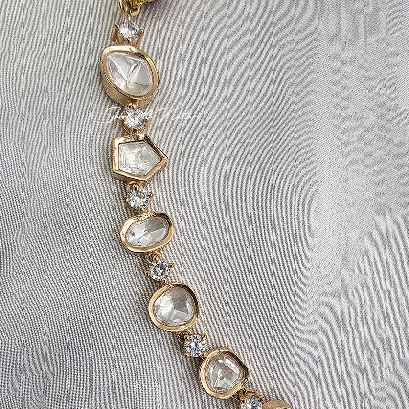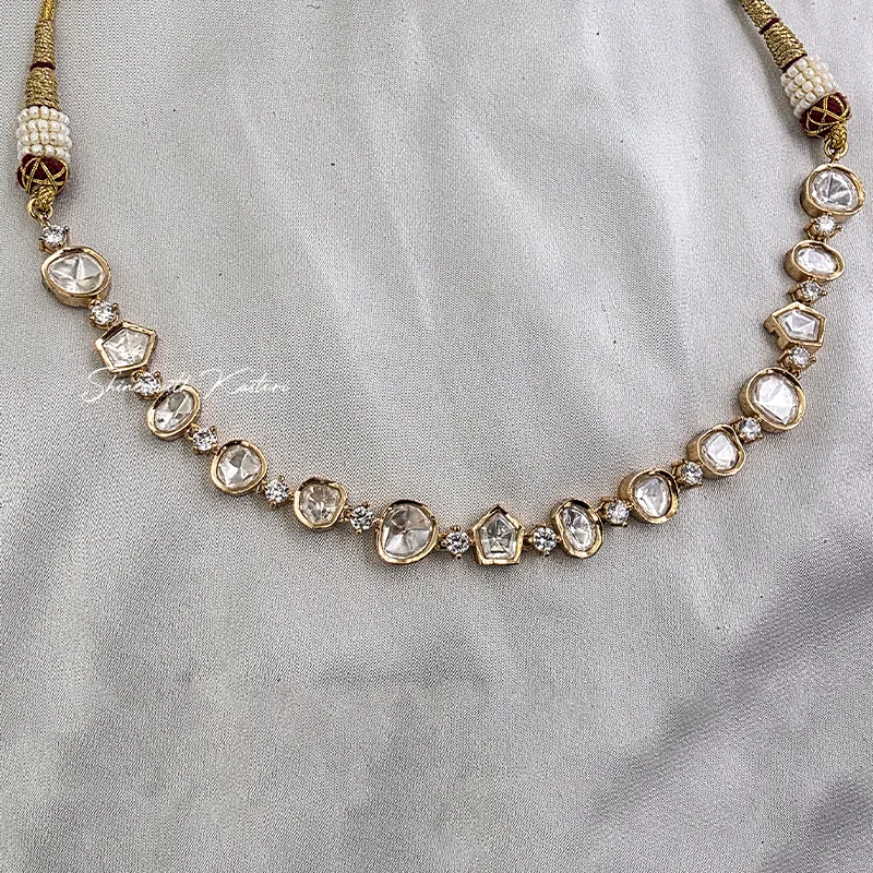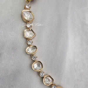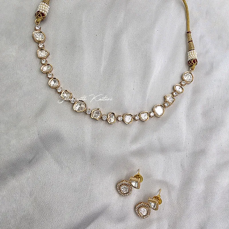 Minimal Kundan Solitaire Necklace Set, designed for those who love subtle sophistication. Featuring a sleek chain adorned with individually set Kundan stones, this necklace offers a refined and graceful look.