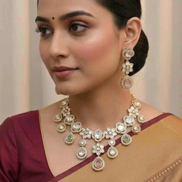 Multicolor Teardrop Kundan Polki Necklace Set