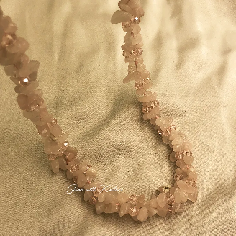 Natural Pink Chip Stone Necklace, designed to bring both beauty and balance to your look. Crafted with irregularly shaped amethyst chips, each piece showcases unique textures and shades of calming purple.