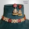 Royal Kundan choker with vintage design and semi-precious stones in various colors and the dominant red stone. The choker is a designer piece with various light and dark colored stones used in pink, blue and green o give it this charming and distinctive look.