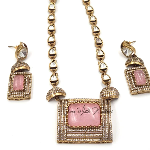 Rose Quartz & Polki Sabyasachi Inspired Necklace