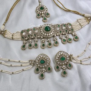 Royal Emerald Kundan Choker Set with Pearl Strings