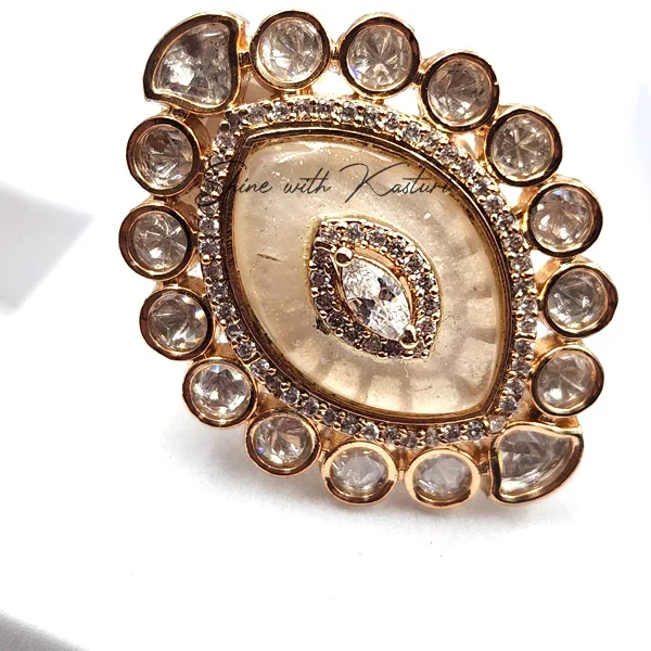 Royal Kundan Teardrop Enamelled Ring