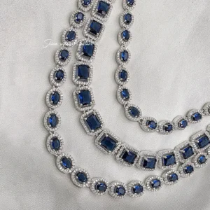 Make a bold and unforgettable statement with this breathtaking Royal Blue Layered Necklace Set. Designed with multiple layers of radiant ruby-red stones framed by shimmering crystal accents, this piece embodies elegance, glamour, and timeless luxury.