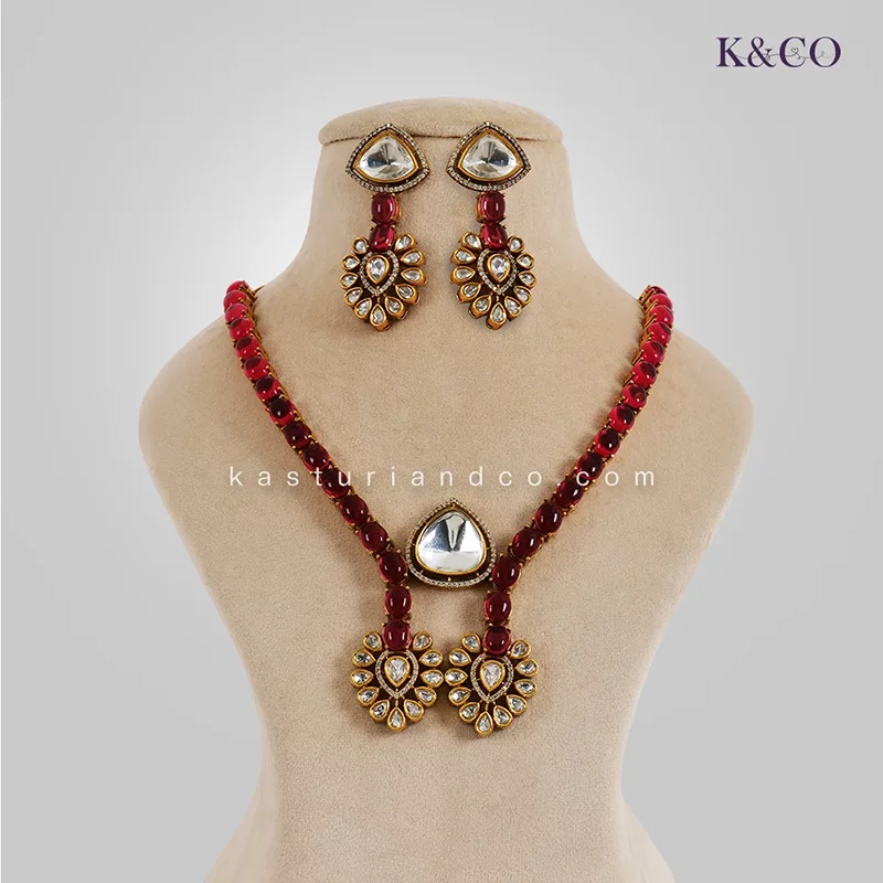 Shelly Stone Polki Cross Necklace Red