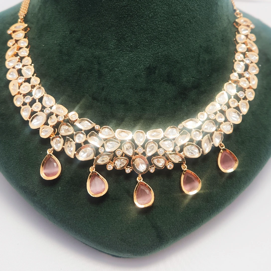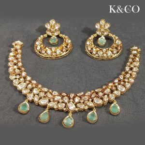 Colors : Green, Mint Green, Pink, White Sure to impress medium length , chain adjustable necklace with chandbali style earrings. Quality of workmanship and material, and will look so elegant to wear.